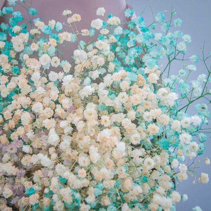 “Сиреневый туман” – композиция из гипсофилы в шляпной коробке