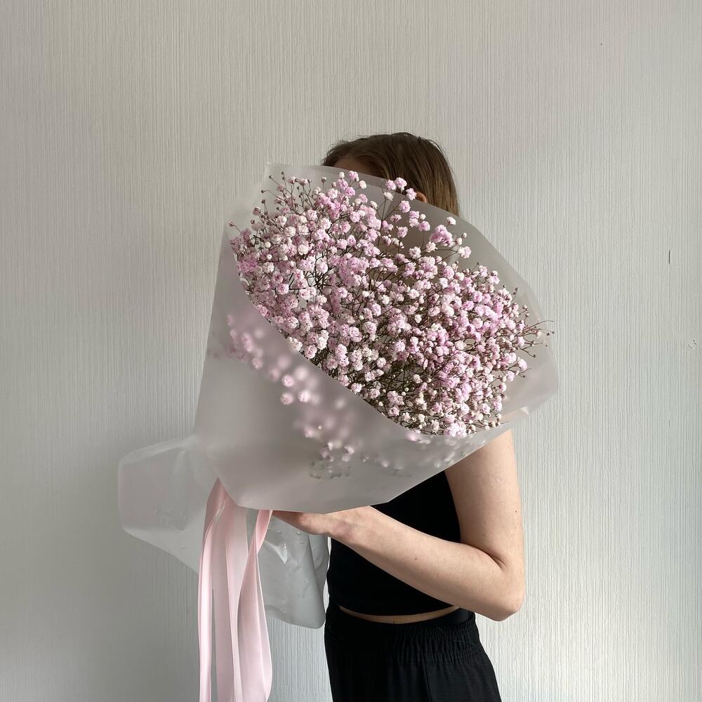Подарочный набор с букетом из розовой гипсофилой