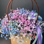 Стильная, сочная композиция из гипсофилы в сумочке станет прекрасным подарком на любой праздник или приятным сюрпризом в качестве комплимента