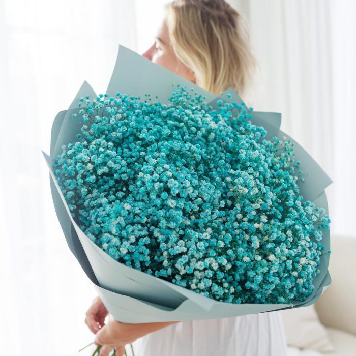 Лента атласная – 1 шт.Пленка корейская – 3 шт.гипсофила цветная – 17 шт.инструкция по уходу за цветами – 1 шт.