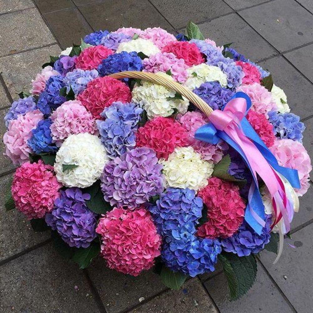 Гортензия – 29 шт.Корзина большая – 1 шт.Оазис флористический – 5 шт.