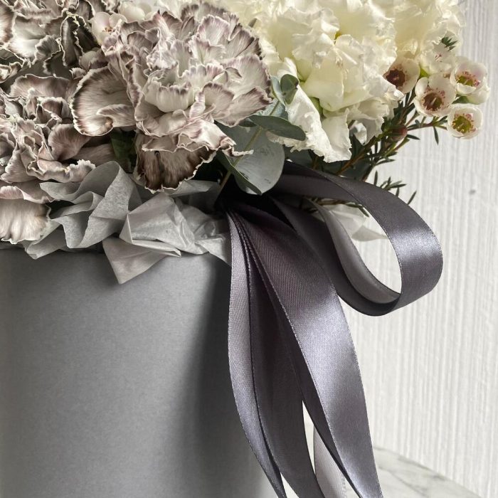 Букет из диантусов в шляпной коробке