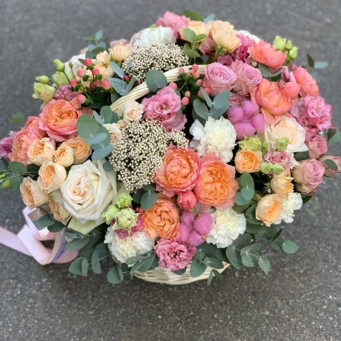 Метки: от 5000 руб, цветы в корзине