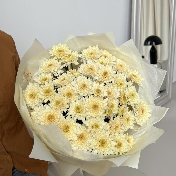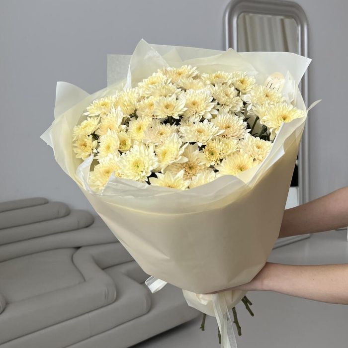 Пленка матовая – 1 шт.тишью хрустящая – 1 шт.хризантем кустовая sorbet с легким медовым ароматом – 9 шт.открыточка брендированная в подарок – 1 шт.