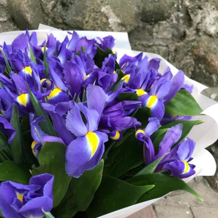 Лента атласная – 1 шт.Фисташка – 5 шт.Упаковка дизайнерская – 2 шт.Ирис Blue Magic – 51 шт.