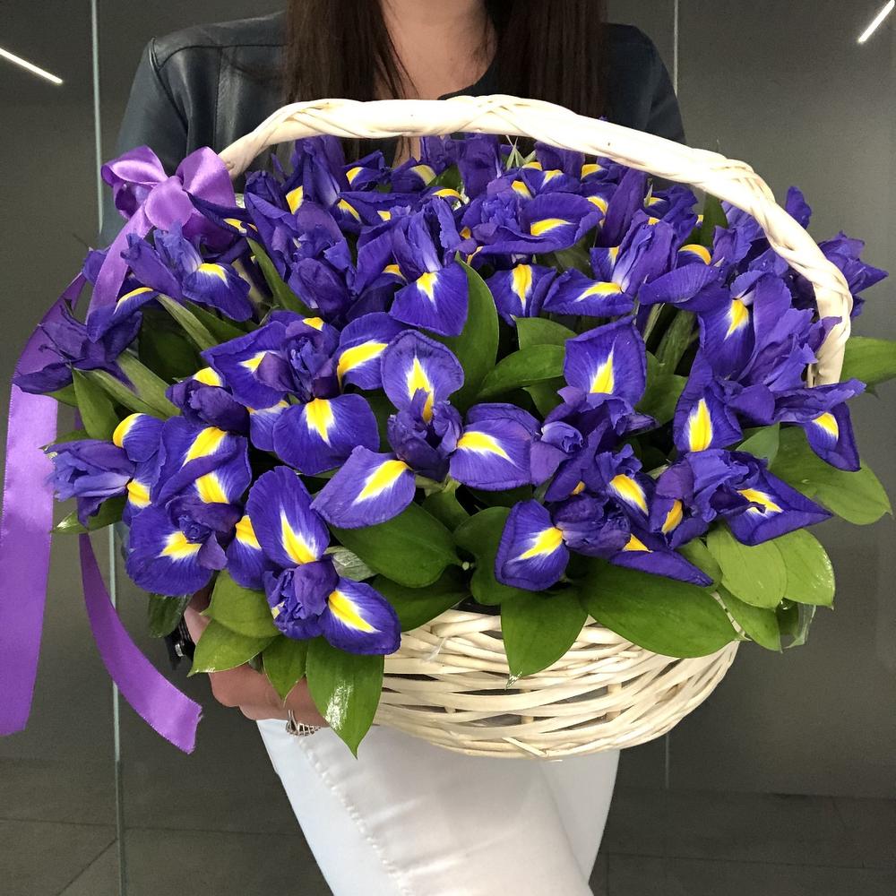 Ирис – 45 шт.Корзина – 1 шт.Оазис флористический – 2 шт.Зелень – 10 шт.