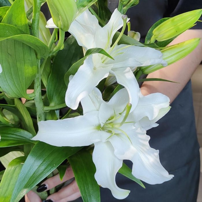Лилия белая – 3 шт.Лента атласная – 1 шт.
