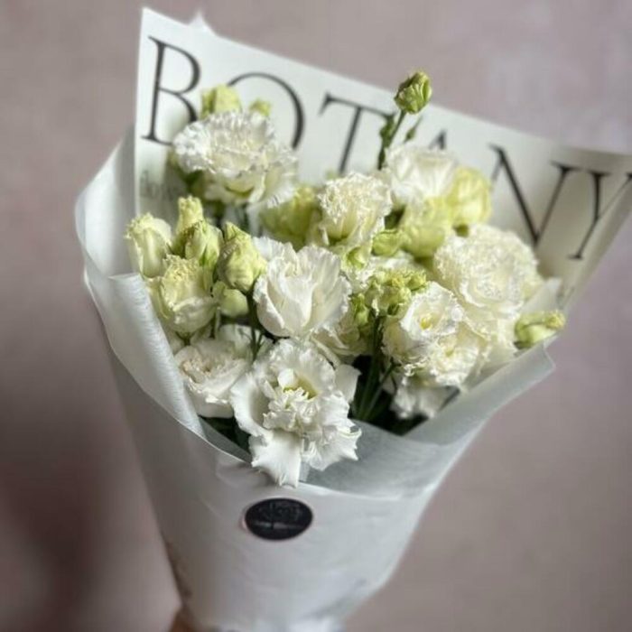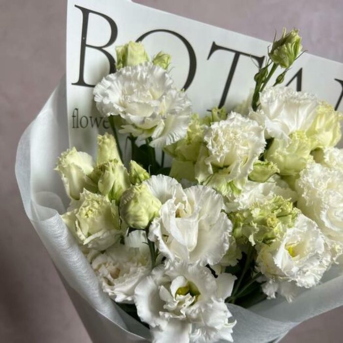 Лизиантус (эустома) – 7 шт.декоративная упаковка – 1 шт.Атласная лента – 1 шт.