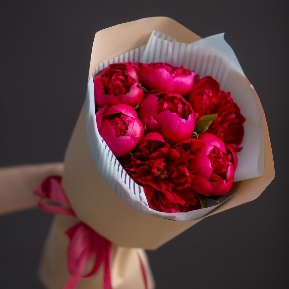 пион red charm – 7 шт.Упаковка матовая – 7 шт.Лента атласная – 1 шт.