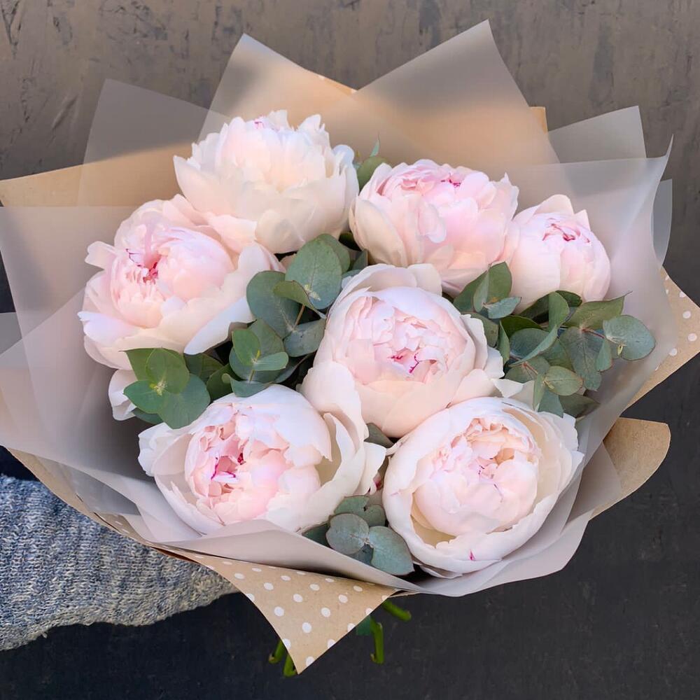 Букет пионов с эвкалиптом