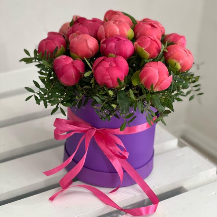 Коралловые пионы в коробке