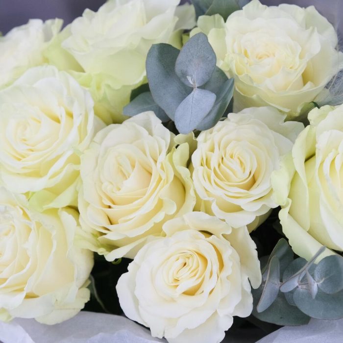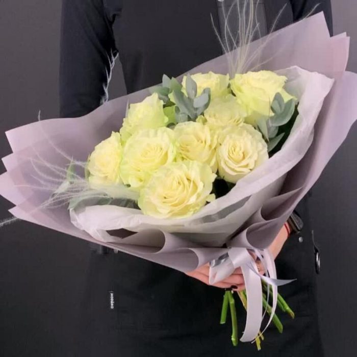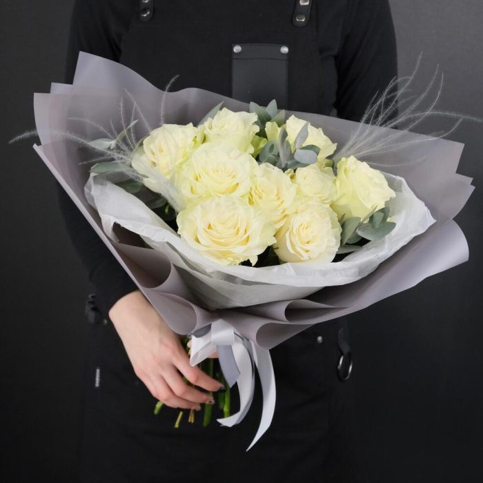 Эвкалипт – 1 шт.Упаковка – 1 шт.роза сорта мондиаль – 9 шт.