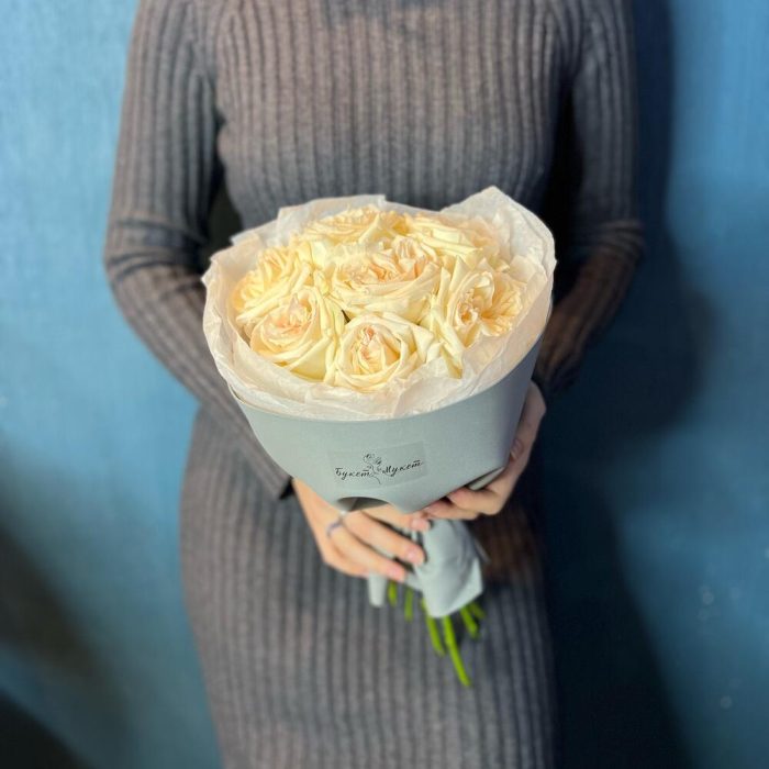 Лента атласная – 1 шт.Тишью – 2 шт.Фоамиран – 1 шт.роза white o’hara – 7 шт.