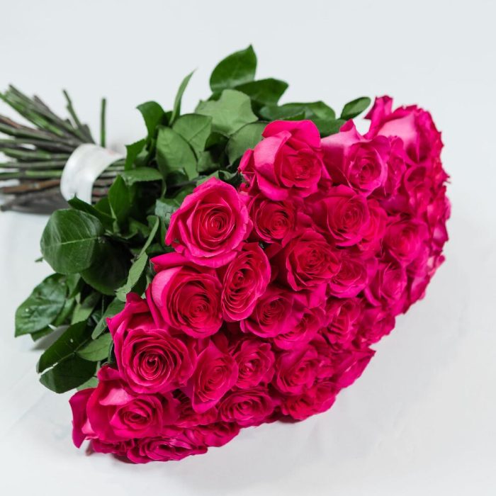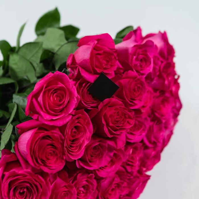 Роза эквадор розовая – 101 шт.Пленка прозрачная – 1 шт.Лента атласная – 1 шт.