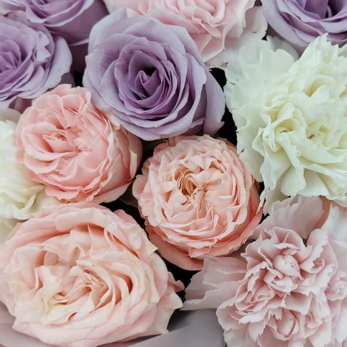 Роза – 9 шт.роза кустовая премиум – 4 шт.гвоздика сортовая (диантус) – 13 шт.Пистация – 5 шт.Упаковка дизайнерская – 1 шт.