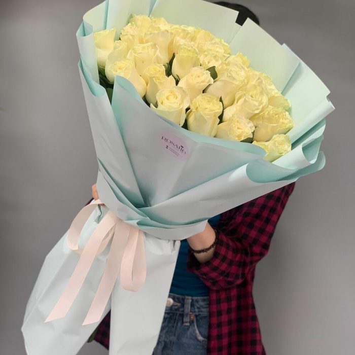 25 Белых Роз premium 60см