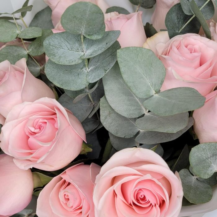 Букет розовых Роз и Эвкалипта