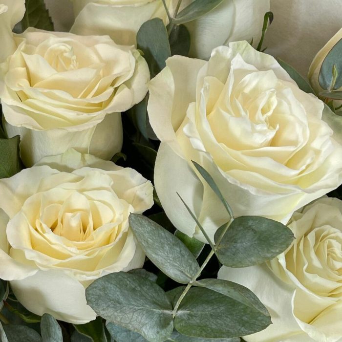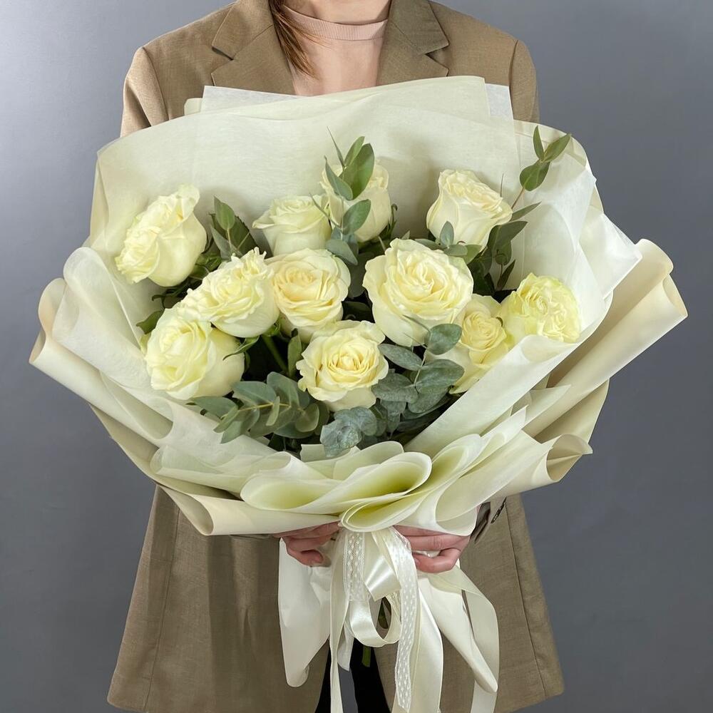 Лента – 2 шт.Эвкалипт – 2 шт.Роза – 11 шт.Упаковка – 2 шт.
