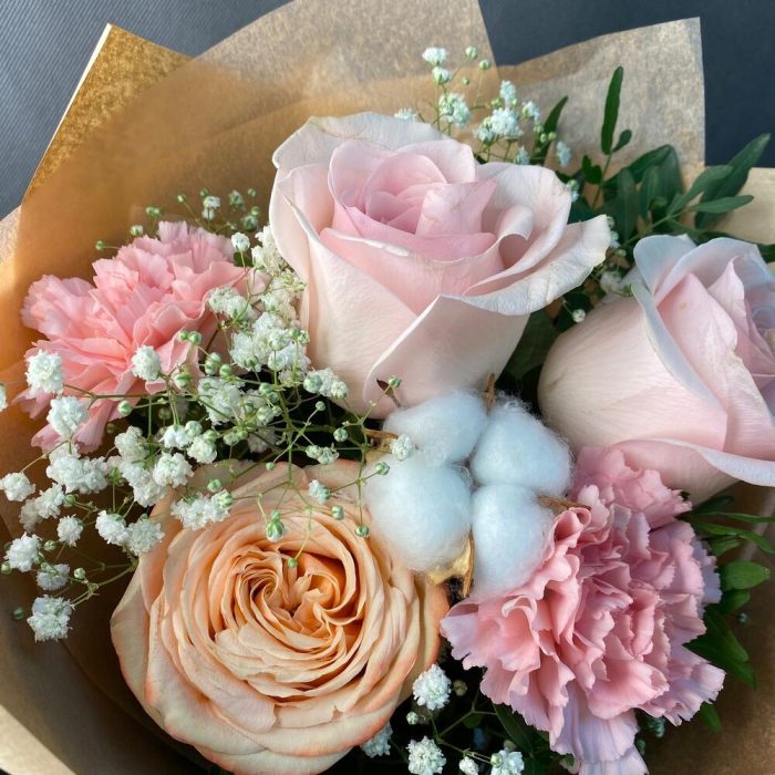 Букет с хлопком и гипсофилой