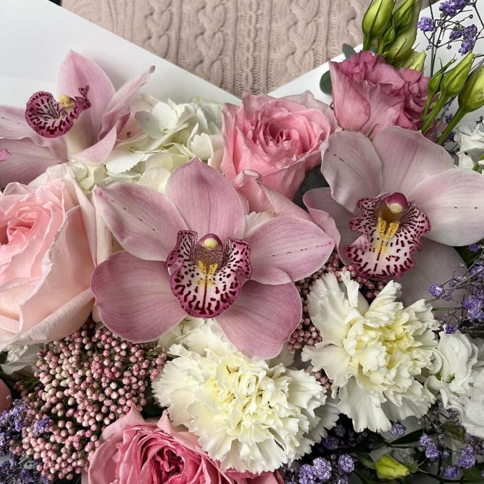 Букет с орхидеями и кустовыми розами Балет
