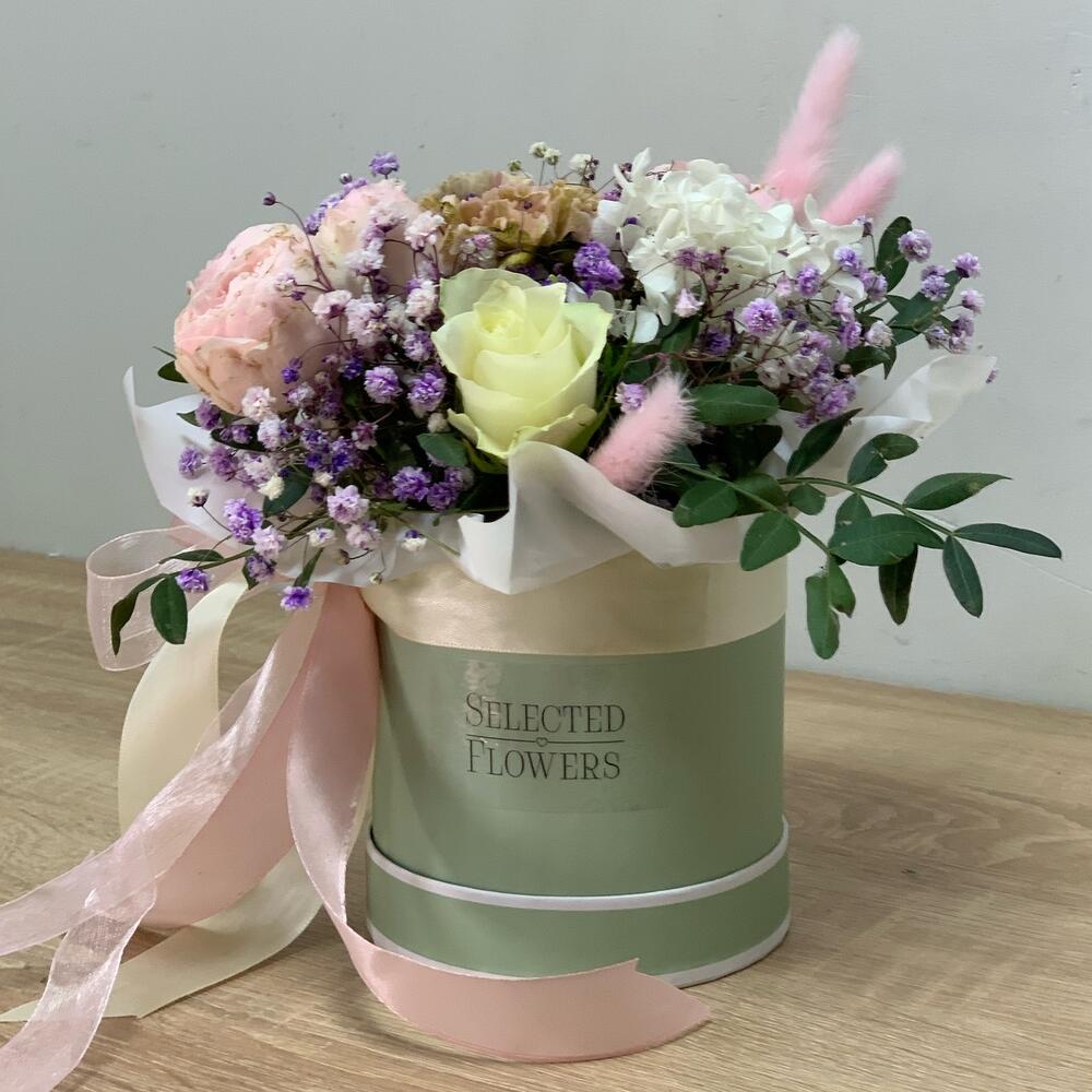 “В твоих глазах”: нежная шляпная коробка с французскими розами
