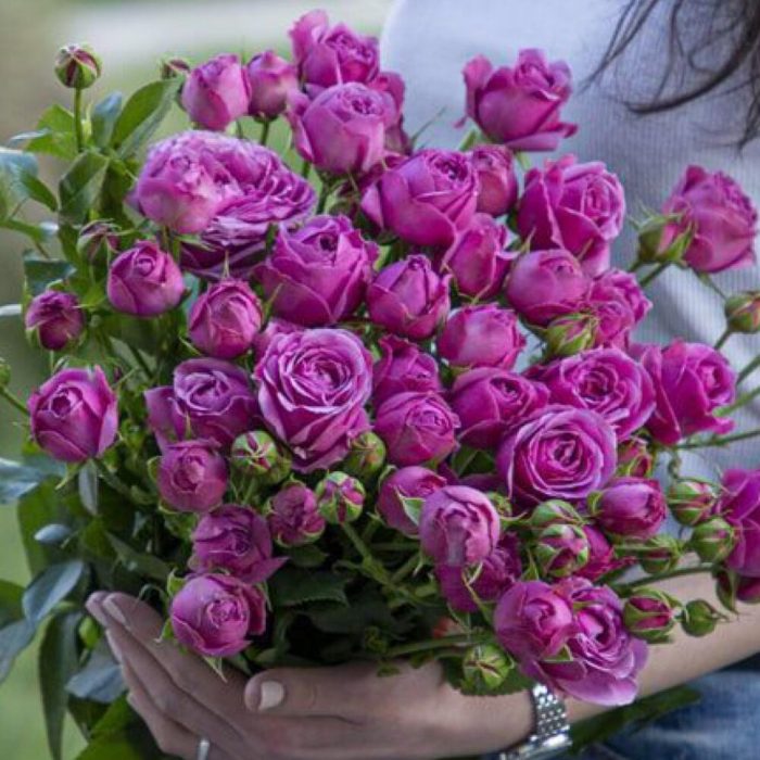 Кустовые розы малиновые (фиалетовые), 9 шт, 70см