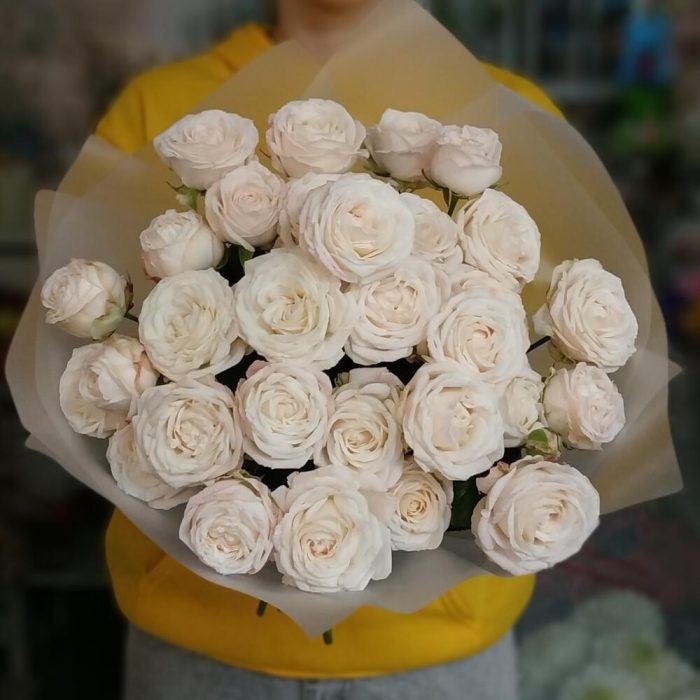 Оформление матовая пленка – 1 шт.кустовые розы – 9 шт.