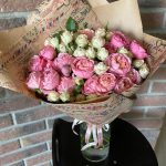 Букет из розовых роз, альстромерии и зелени «Матильда»