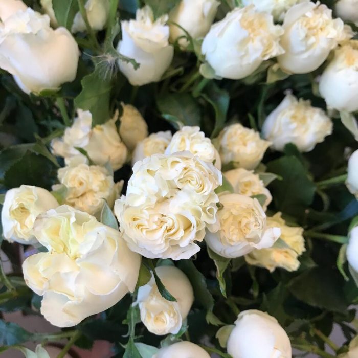 Лента атласная – 1 шт.Кустовая роза – 9 шт.