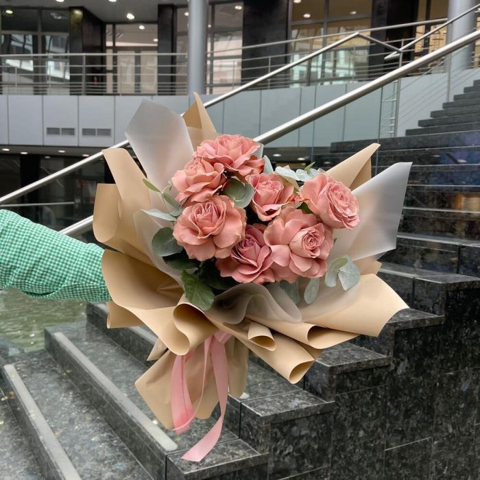 Роза Капучино – 7 шт.Упаковка дизайнерская – 3 шт.