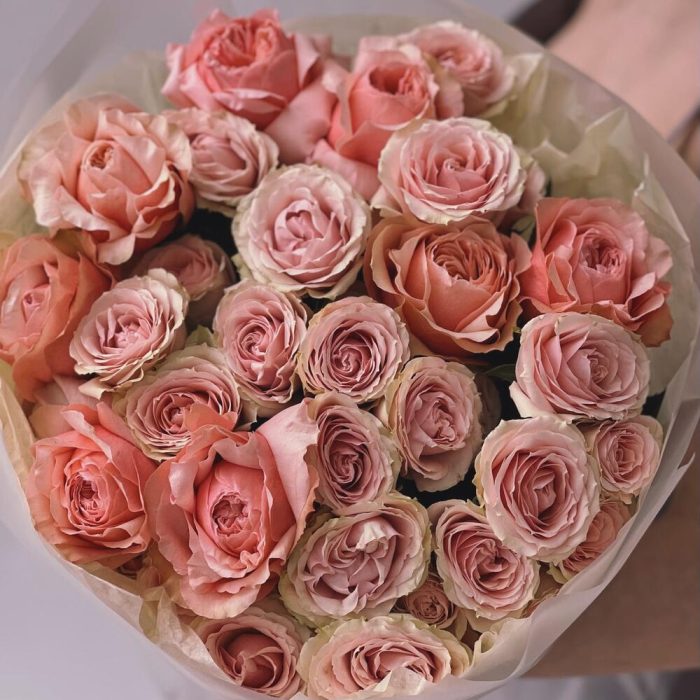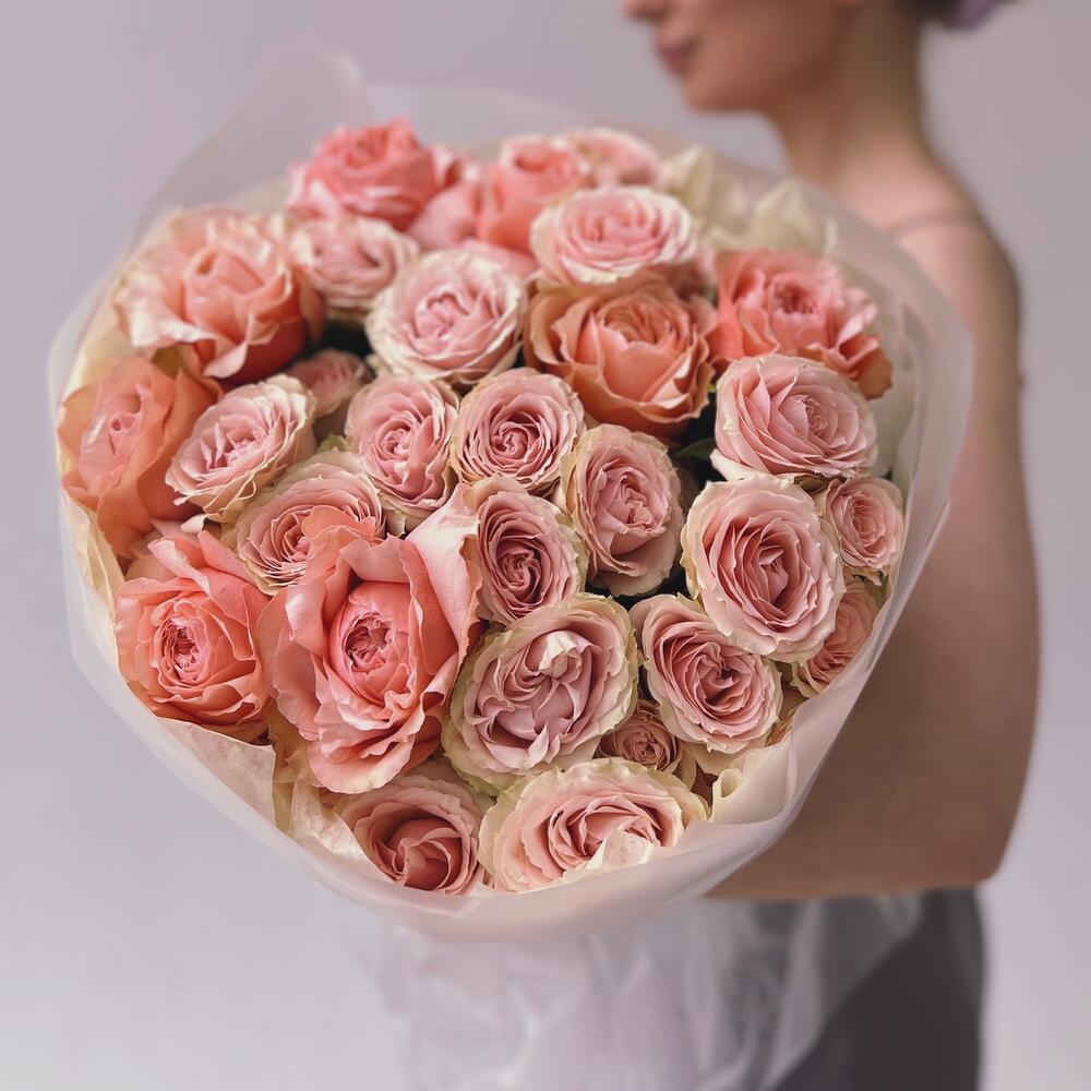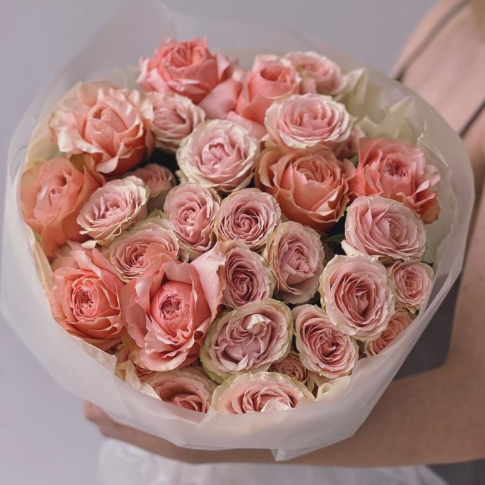 Роза – 9 шт.Кустовая роза – 6 шт.Упаковка дизайнерская – 1 шт.
