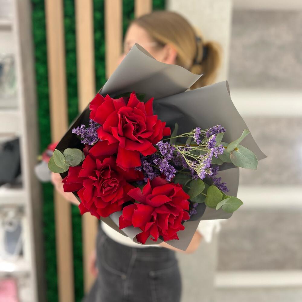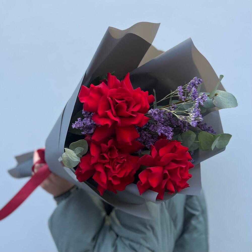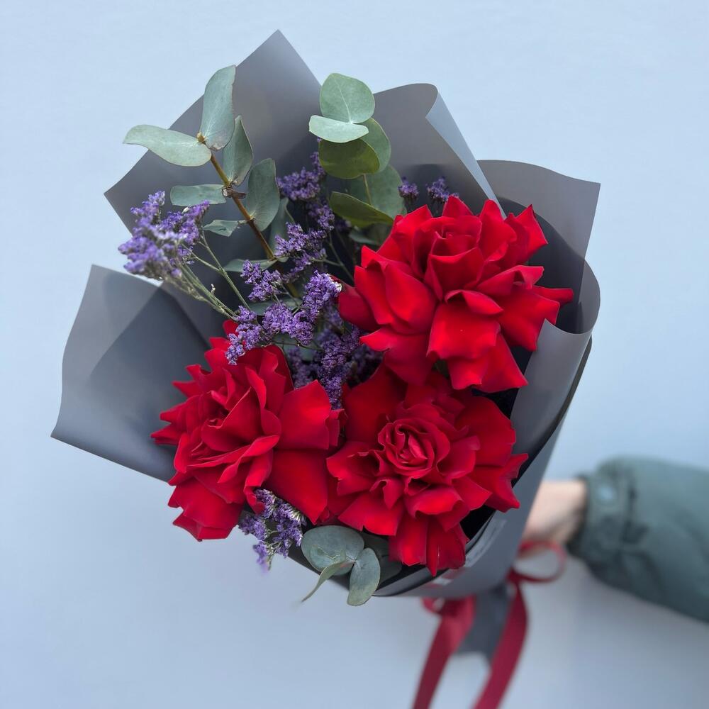 Red (розы, лимониум, эвкалипт)