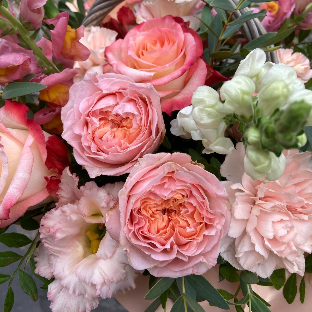 Кустовые розы, Лизиантусы, Розы, Сухоцвет