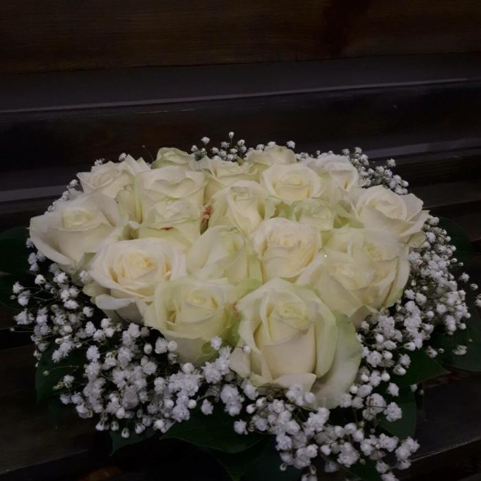 Гипсофила – 2 шт. белая роза – 19 шт. форма сердца – 1 шт.