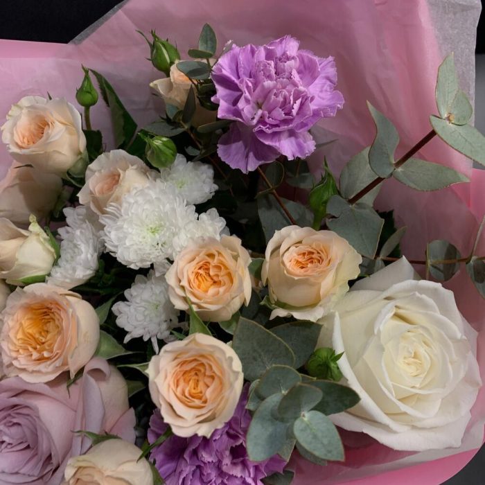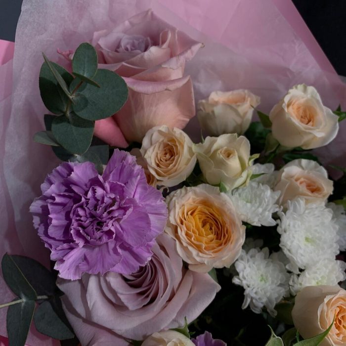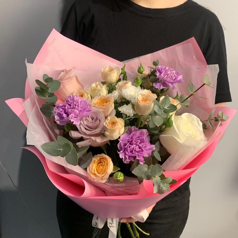 Гвоздики, Кустовые розы, Пионовидные розы, Розы
