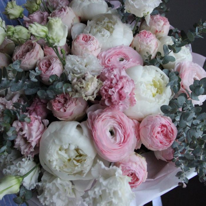 Зефирное облачко – Букет с пионами и ранункулюсами