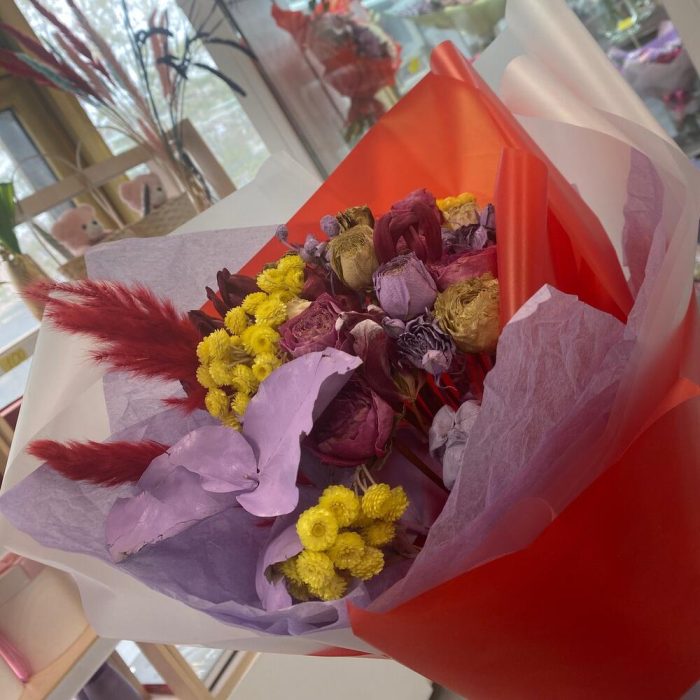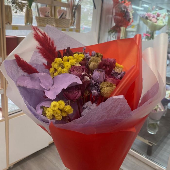 Сухоцветы – 25 шт.Упаковка – 5 шт.Лента атласная – 1 шт.