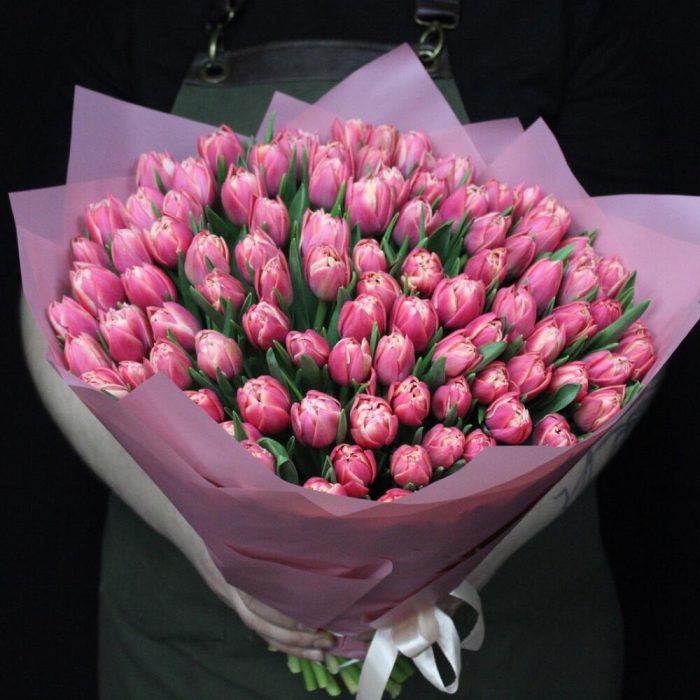 mono bouquet 110 из 101 пионовидного тюльпана сорта Columbus