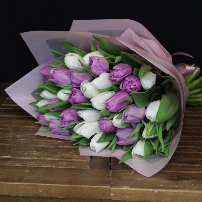 mono bouquet 123 из 35 тюльпанов mix сортов royal virgin и double price