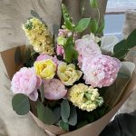 Весенний букет с пионами и маттиолой